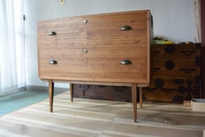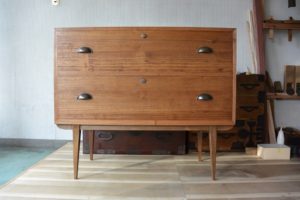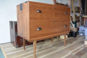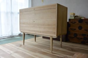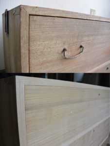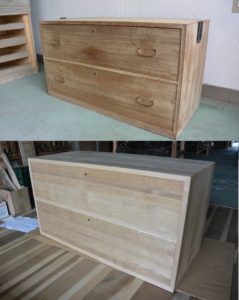 こんな洋風チェストですが、桐箪笥特有の気密性はある程度確保されていて、一つの引出しを閉めるともう一方の引出しが少し出てきます。桐箪笥の可能性は無限にある気がします。