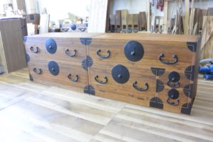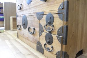 今回その蔵も含め自宅を改築することになったのですが、蔵の中に限らず自宅の中にも古い箪笥がたくさんあり、代々引き継がれたものなので全ては無理でも幾つかは残したいということで今回の再生に至りました。