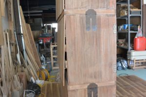 元の箪笥は亡くなられたお母様の嫁入り道具でした。転勤や引越しなどで何度も移動を余儀なくされるもその都度一緒に運んで大事に使われていました。動かすことが多いとやはり箪笥には負担がかかり様々なところが割れたり離れたりしていました。お客様自身も共に過ごしてきて思い入れがあるため、形見として何か残せないかというご依頼でした。