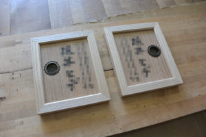 桐の部分だけを取り出し、厨子に改造しました。中にはお母様の名前の入ったネームプレートを額に入れて納めます。このネームプレートには引き戸の戸引き手周辺を利用しました。よく見て触れる箇所だったのでその名残として戸引き手を残して名入れをしたので左右一対あります。他にも親族で形見分けにと引き明け(鍵穴飾り)をペンダントにアレンジしました。元は引き明けだったとわかるようにスライドする機構をそのままにペンダントに加工しました。